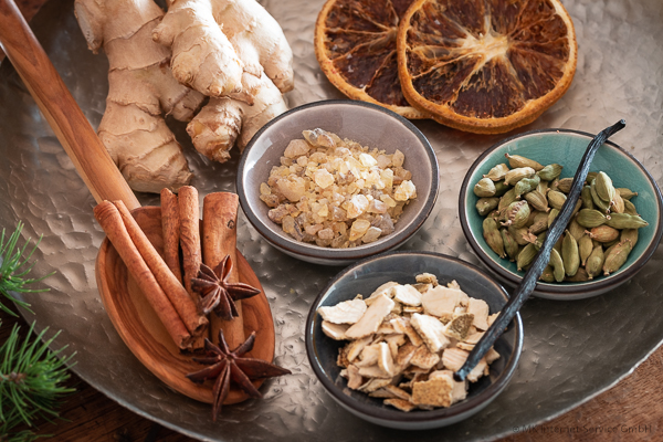 Viele Gewürze, die in der Weihnachtsbäckerei für Plätzchen und Lebkuchen verwendet werden, eignen sich auch wunderbar zum Räuchern.