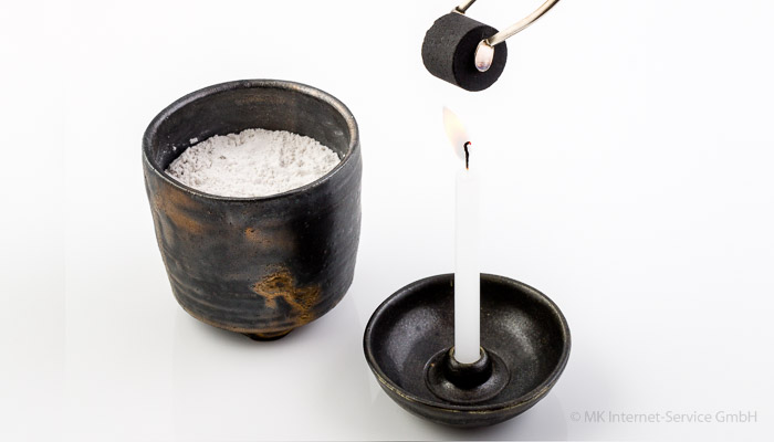 Erhitzen Sie die Räucherkohle z. B. über einer Kerzenflamme, bis sie grauweiß und gut durchgeglüht ist.