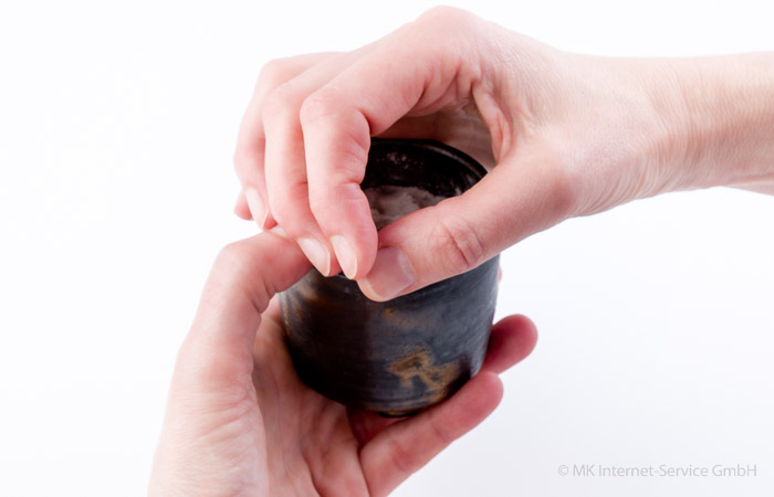 Drehen Sie beim Ausatmen den Kopf zur Seite, um die Asche im Becher nicht aufzuwirbeln.